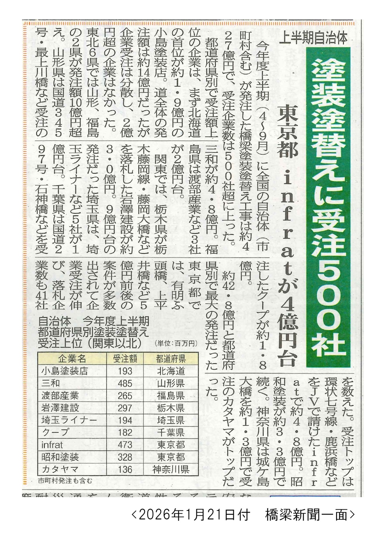 2026年1月21日の橋梁新聞にて、当社の記事が掲載されましたのでお知らせいたします。